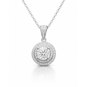 Lumière Halo Moissanite 925 Sterling Silver Pendant