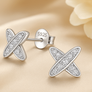 Aurora Cross Moissanite Stud 925 Sterling Silver Earrings
