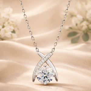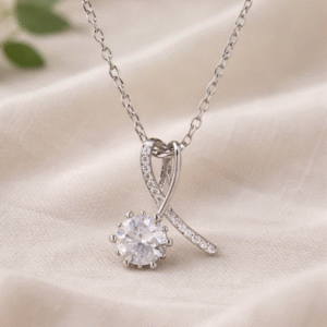 Moissanite Ribbon Grace Pendant – 925 Sterling Silver