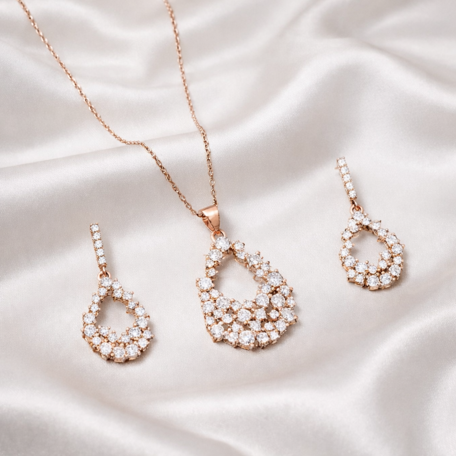 Celestia Rosé Moissanite Teardrop Set – 925 Sterling Silver