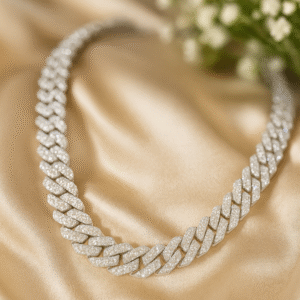 Commanding yet refined, the Regal Moissanite Cuban Link Necklace embodies strength, sophistication, and unmistakable luxury. Each meticulously crafted link is handset with brilliant-cut moissanite stones—chosen for their extraordinary fire, clarity, and light-reflecting brilliance that rivals the world’s finest diamonds. The necklace is cast in premium 925 sterling silver, delivering a sleek, luminous finish that enhances the radiance of every stone