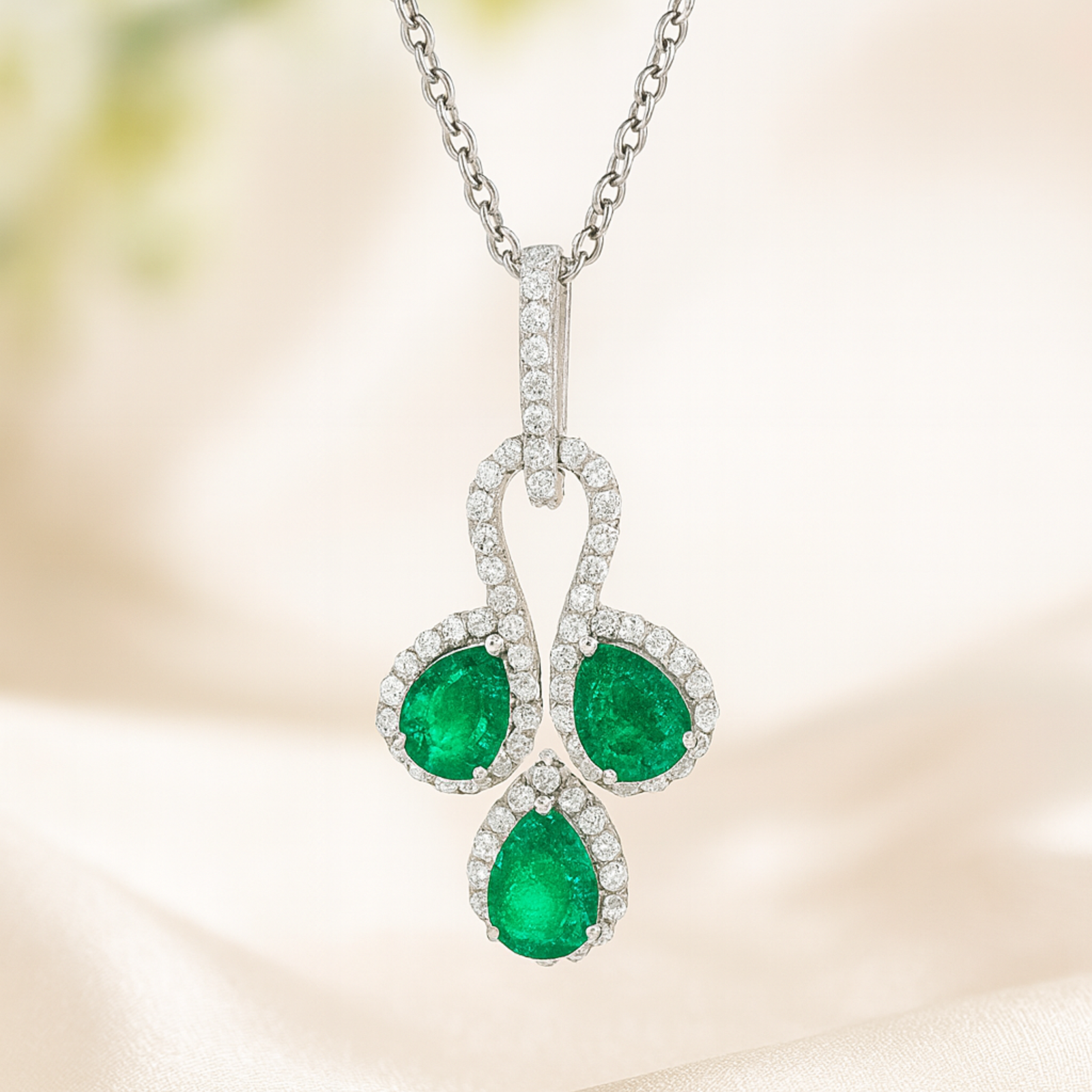 Crafted in platinum-plated 925 sterling silver, the pendant showcases exceptional craftsmanship with polished prongs and a luminous finish that mirrors the look of fine platinum jewelry.