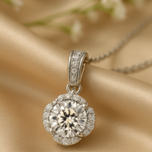 Modern elegance meets timeless brilliance in the Celeste Moissanite Halo Circle Pendant, crafted in premium 925 Sterling Silver. The sleek open-circle design is adorned with meticulously set high-grade moissanite stones, radiating fire and luminosity from every angle. A refined tapered spike detail adds a bold contemporary twist, creating a perfect balance between sophistication and edge.