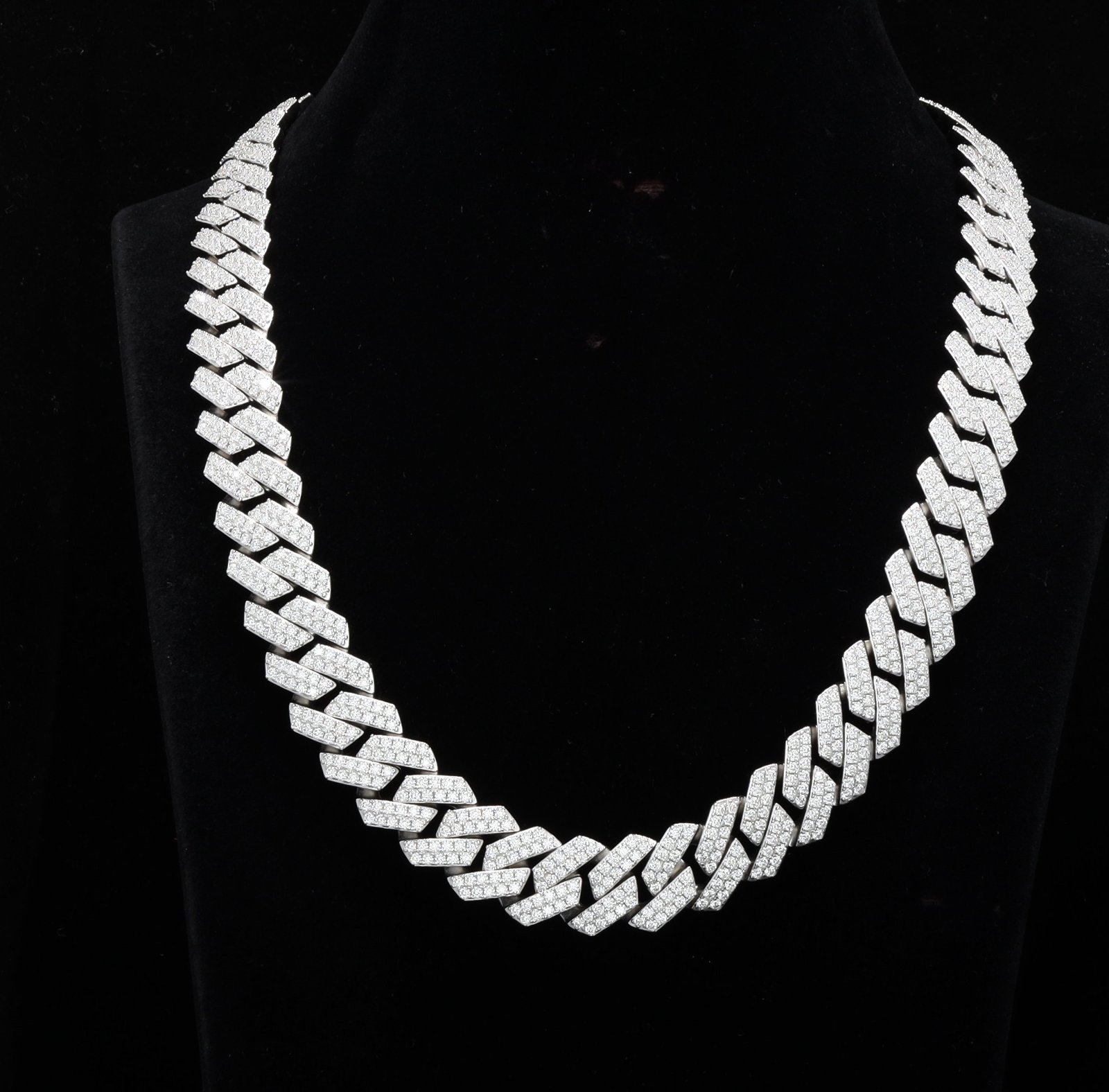 The necklace is cast in premium 925 sterling silver, delivering a sleek, luminous finish that enhances the radiance of every stone. Bold in presence and fluid in form, the Cuban link silhouette drapes with effortless elegance, making it a signature statement for both extraordinary occasions and elevated everyday style.
