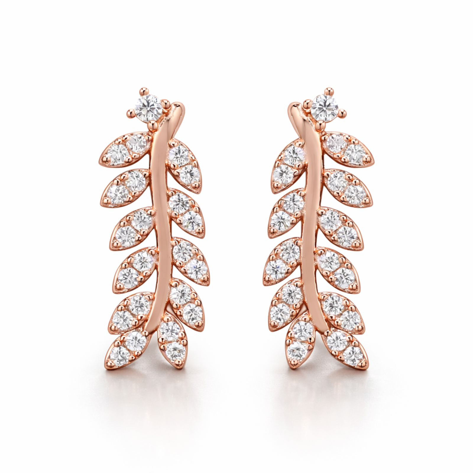 An ode to nature’s fluid beauty, the Celestia Vine Moissanite Earrings are gracefully sculpted in a delicate vine silhouette, where each marquise-shaped leaf glistens with hand-set premium moissanite stones. The design flows effortlessly, capturing movement, light, and refined femininity in perfect harmony.