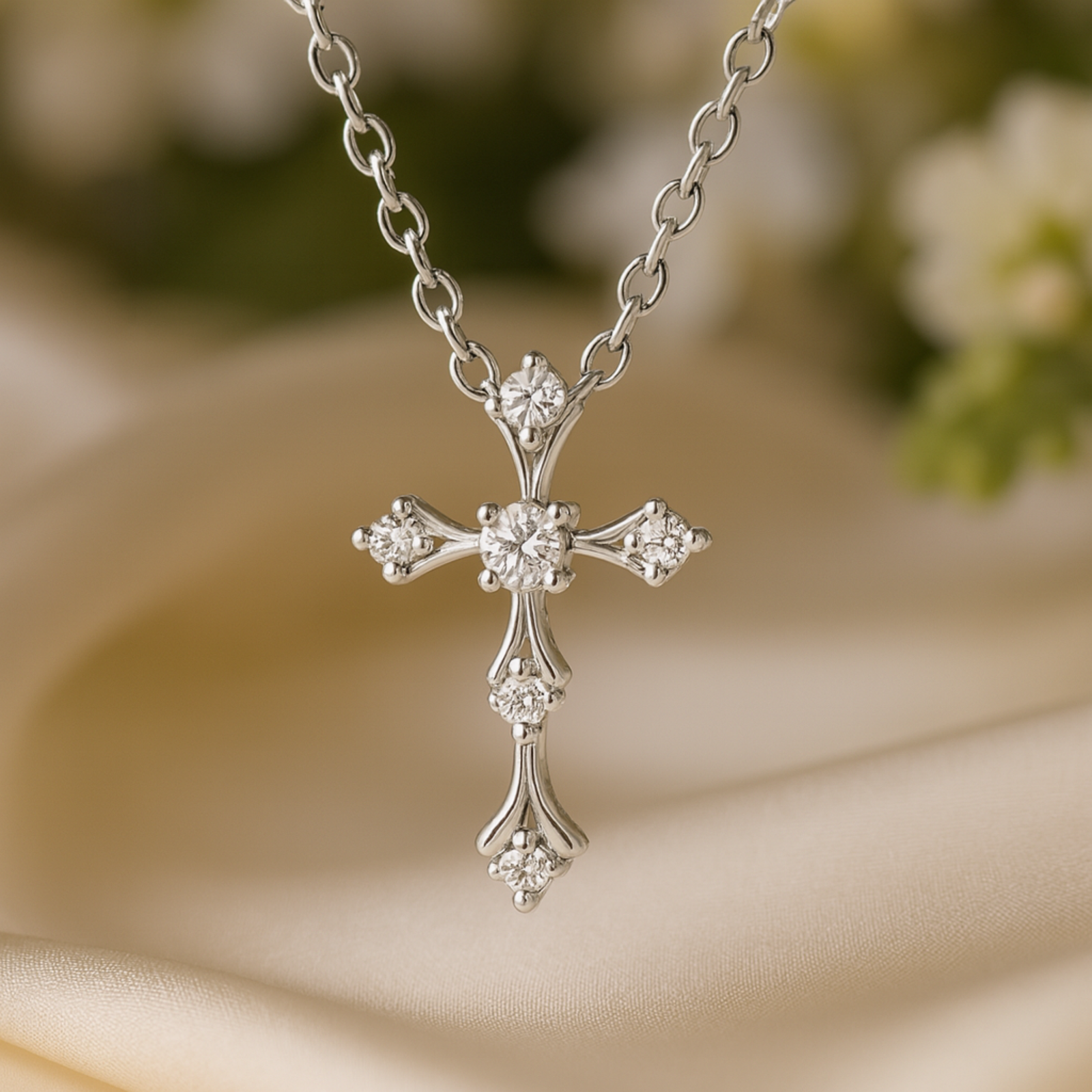Crafted in luminous 925 Sterling Silver, the Divine Radiance Moissanite Cross Pendant is an elegant expression of grace and refined beauty. Each arm of the cross is adorned with brilliant-cut moissanite stones, meticulously set to capture and reflect light with breathtaking fire—rivaling the brilliance of diamonds.