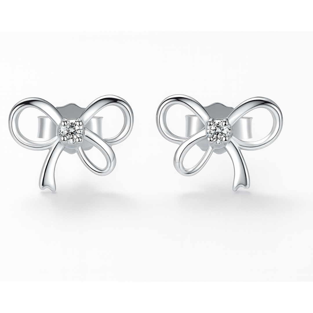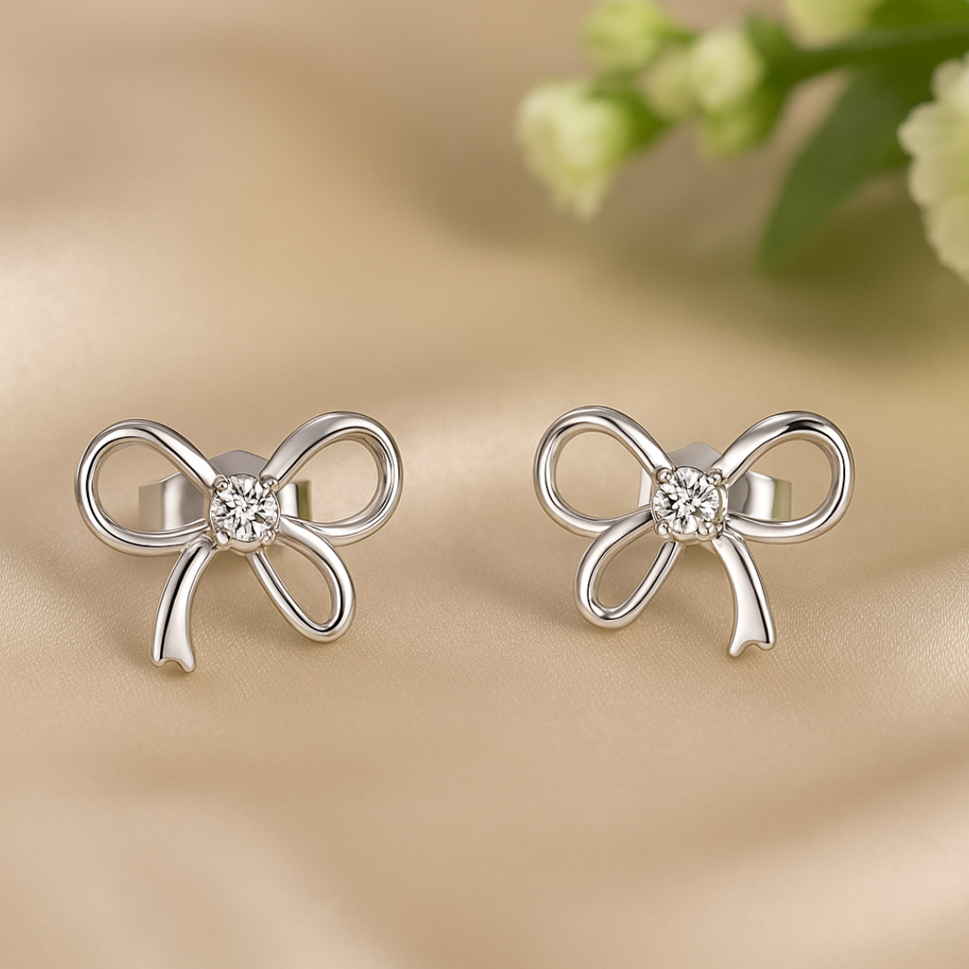 A sparkling center stone adds just the right hint of brilliance, enhancing the soft curves of the bow without overpowering its subtle beauty. Designed for women who appreciate understated elegance, these earrings are perfect for daily wear, office styling, or special occasions where simplicity speaks volumes.