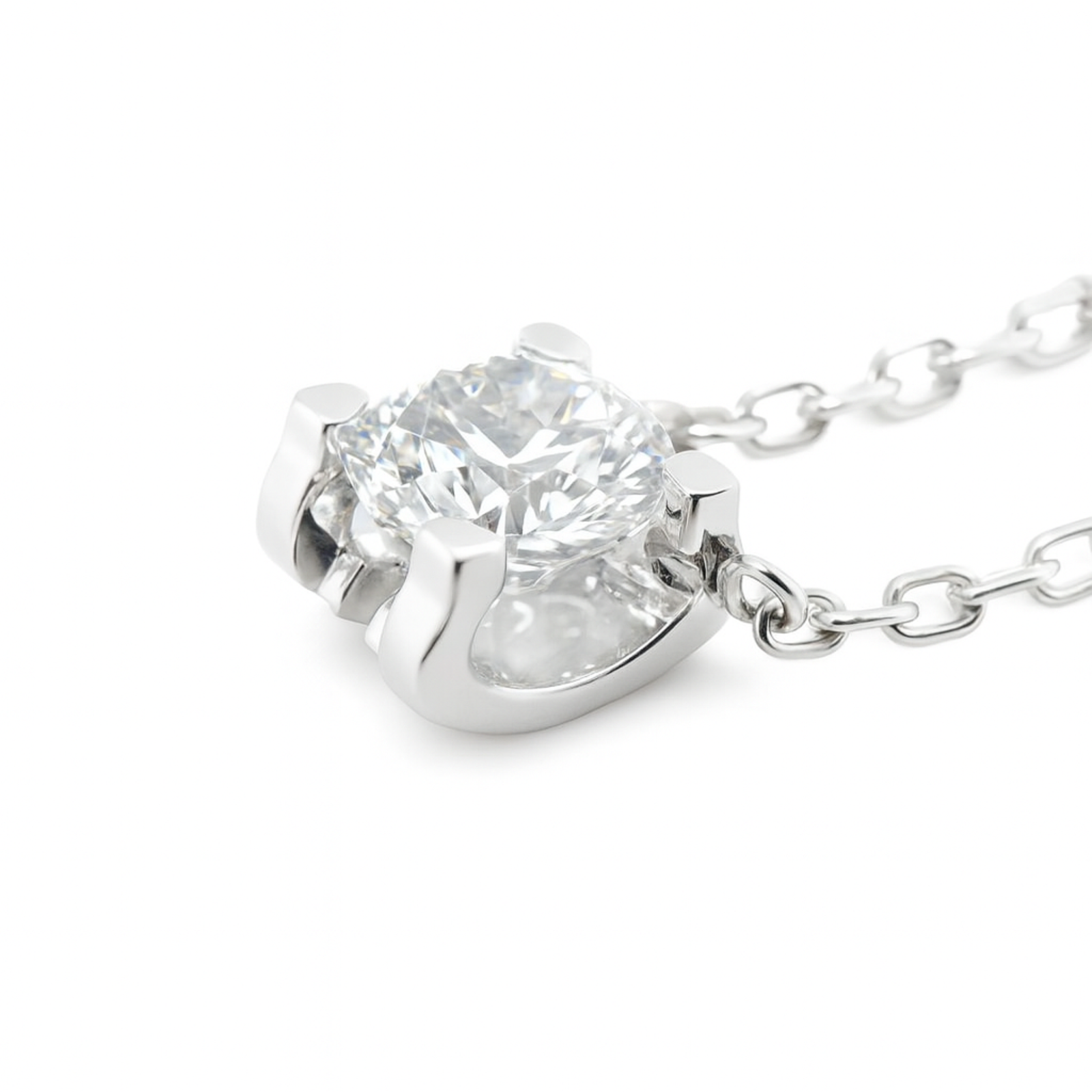A timeless celebration of brilliance, this solitaire pendant features a perfectly cut moissanite 01.00 ct gemstone cradled in a sleek 925 sterling silver setting. The minimalist bar-style design highlights the stone’s exceptional fire, creating a luminous sparkle with every movement. Crafted with refined precision, this pendant evokes a modern elegance reminiscent of high-end luxury houses.