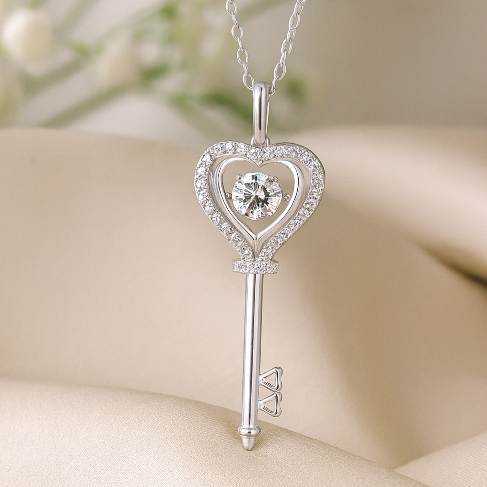 Heart Key Moissanite Pendant – 925 Sterling Silver