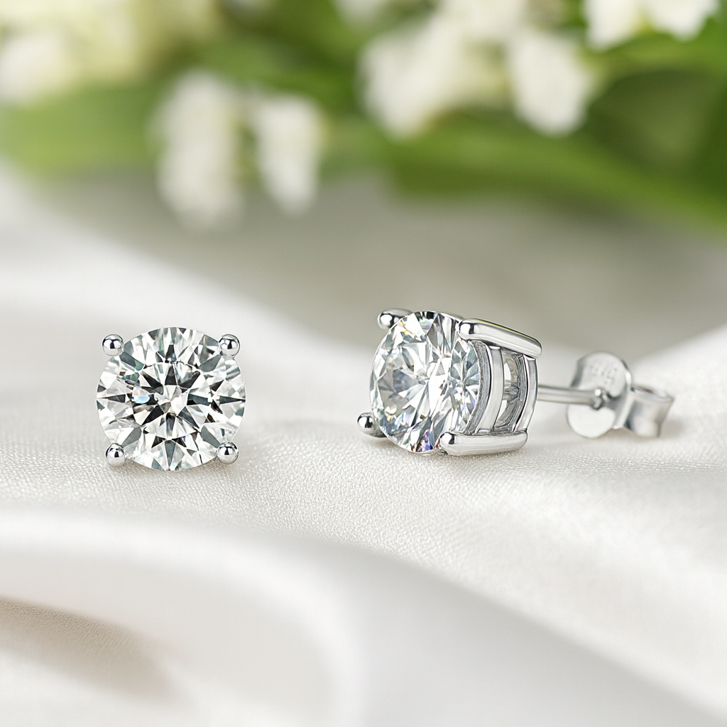 The four-prong setting showcases the stone’s maximum fire and brilliance, while the smooth silver finish brings a refined touch of luxury. At 6.5mm, these studs strike the perfect balance between subtle and striking—ideal for professional wear, special occasions, or effortless daily sparkle.