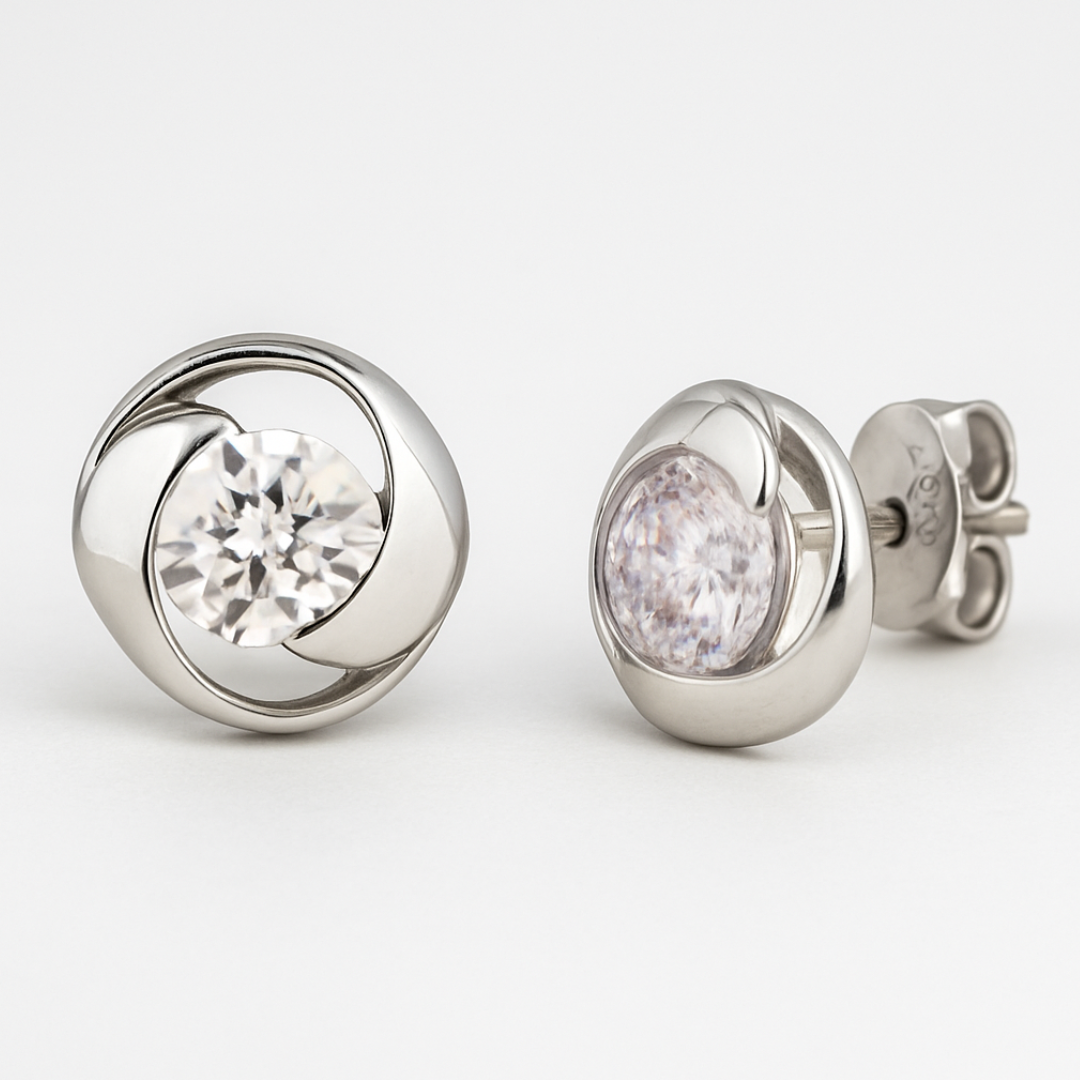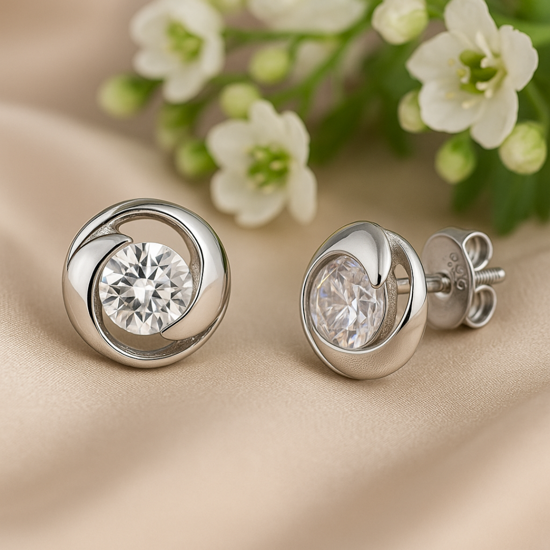 Gracefully sculpted with a modern swirl silhouette, the Eternal Swirl Moissanite Solitaire Stud Earrings bring a refined touch of elegance to any look. Each earring features a brilliantly faceted solitaire stone, securely embraced by smooth, flowing curves of S925 sterling silver—symbolizing harmony, balance, and timeless beauty.